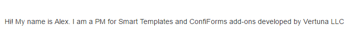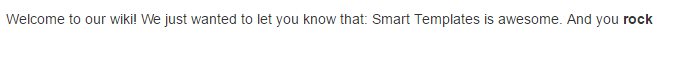 The rendered result is as follows (ConfiForms field has a value "Smart Templates is awesome" stored in the field we reference):